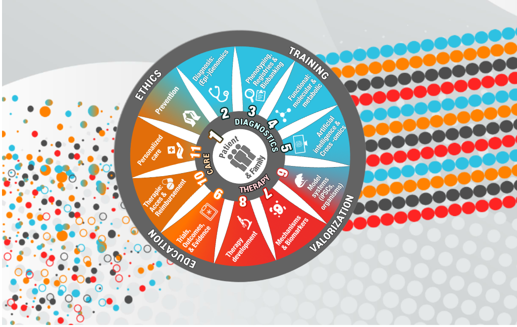 To accelerate and innovate translational research and care, we use the Emma CPM therapy-accelerating wheel. The patient and the family are at the center and can go through the entire knowledge chain from diagnostics to clinical trials and approval of therapy.