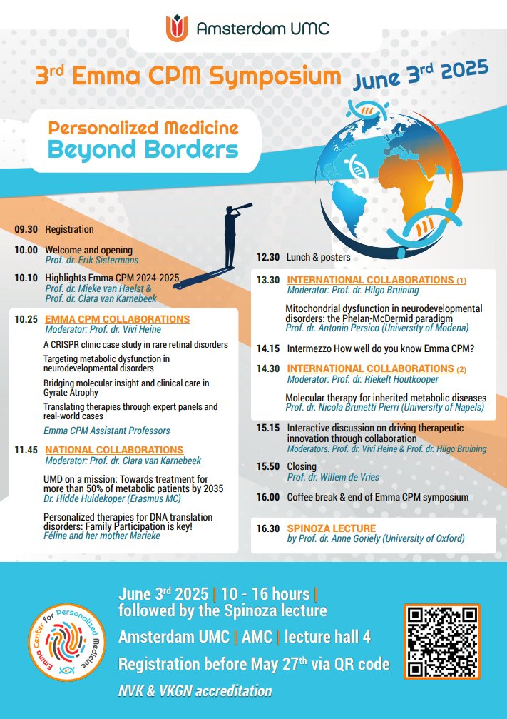 We are very excited to announce our upcoming Emma CPM symposium: Translating Rare Disease Research into Clinical Impact: insights from 5 years of Emma CPM. Please mark the 9th of June in your calendar and join us for an inspiring day with engaging speakers and the opportunity to connect with colleagues.